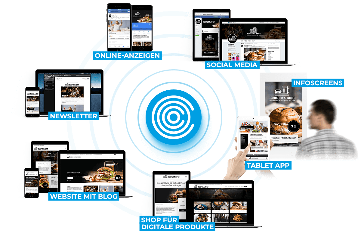 Die Nutzung von Social Media gibt dir Zugang zu neuen Zielgruppen und steigert so deine Reichweite. Der Aufbau einer eigenen Community hilft dabei, Angebote und Dienstleistungen bekannter zu machen und mit Interessenten zu interagieren. Mit COCO kannst du deine Inhalte mit einem Klick auf Facebook, Instagram, LinkedIn, Google My Business, Pinterest und Twitter publizieren.
